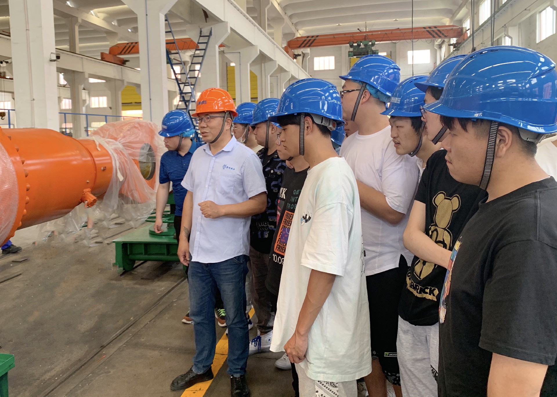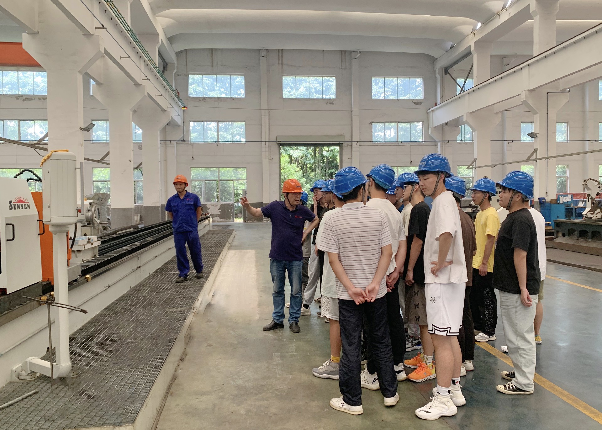 下午,車間主任帶領(lǐng)同學(xué)們實地參觀了金工車間、裝配車間、熱噴涂車間等工作區(qū)域,針對學(xué)生們所學(xué)的專業(yè),車間主任結(jié)合實際操作,現(xiàn)場為學(xué)生講解,讓學(xué)生對即將頂崗實習(xí)的崗位有了實際的認(rèn)識。